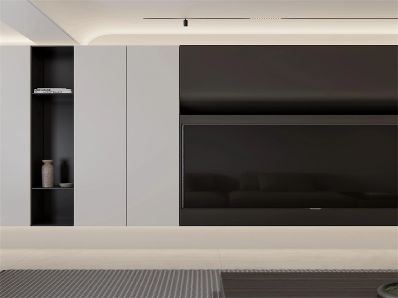 客廳整體采用灰白與極簡(jiǎn)黑搭配,整體白色的墻面讓空間顯得更加簡(jiǎn)約純粹,